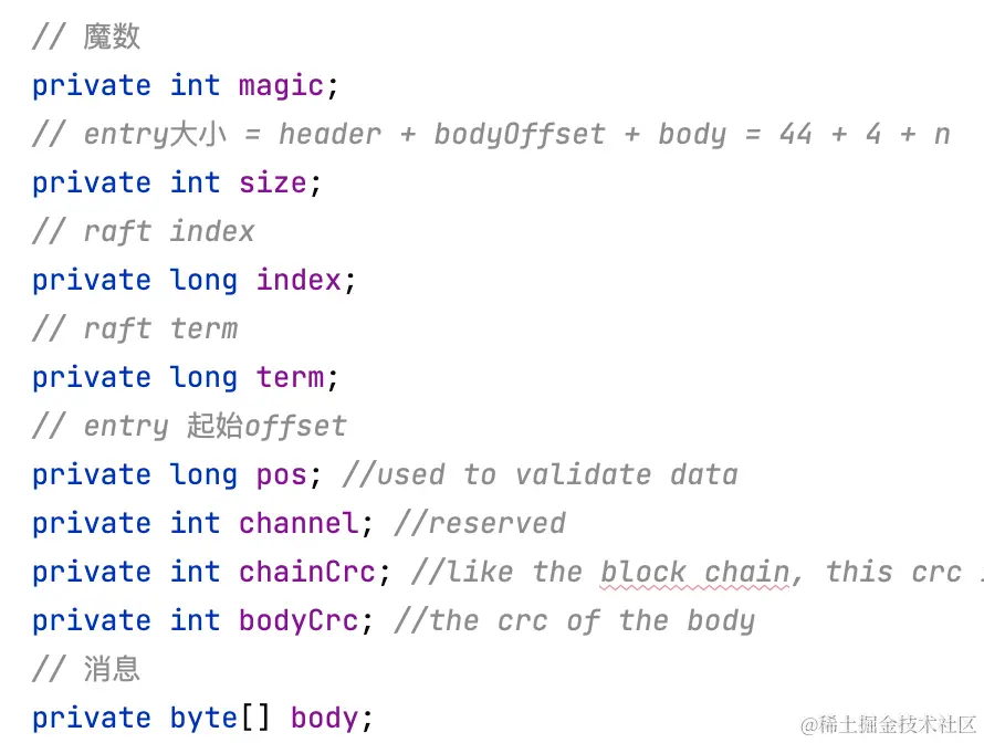 - 将message按照原生commitlog序列化,在外边套上raft属性,成为一条raft日志DLedgerEntry;