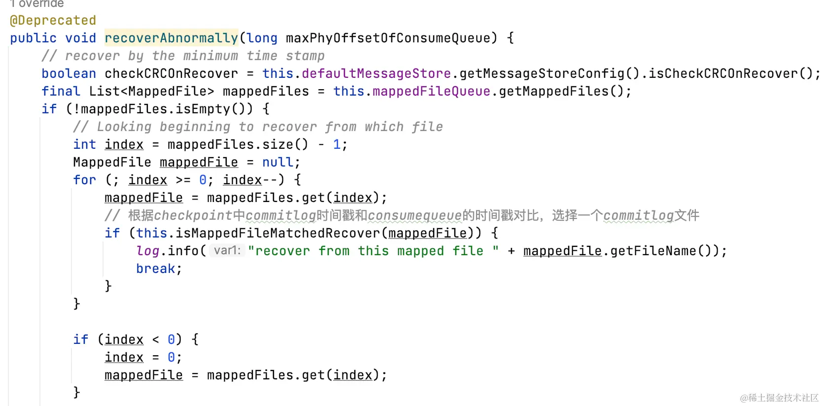 CommitLog#recoverAbnormally:(一直被标记为废弃)