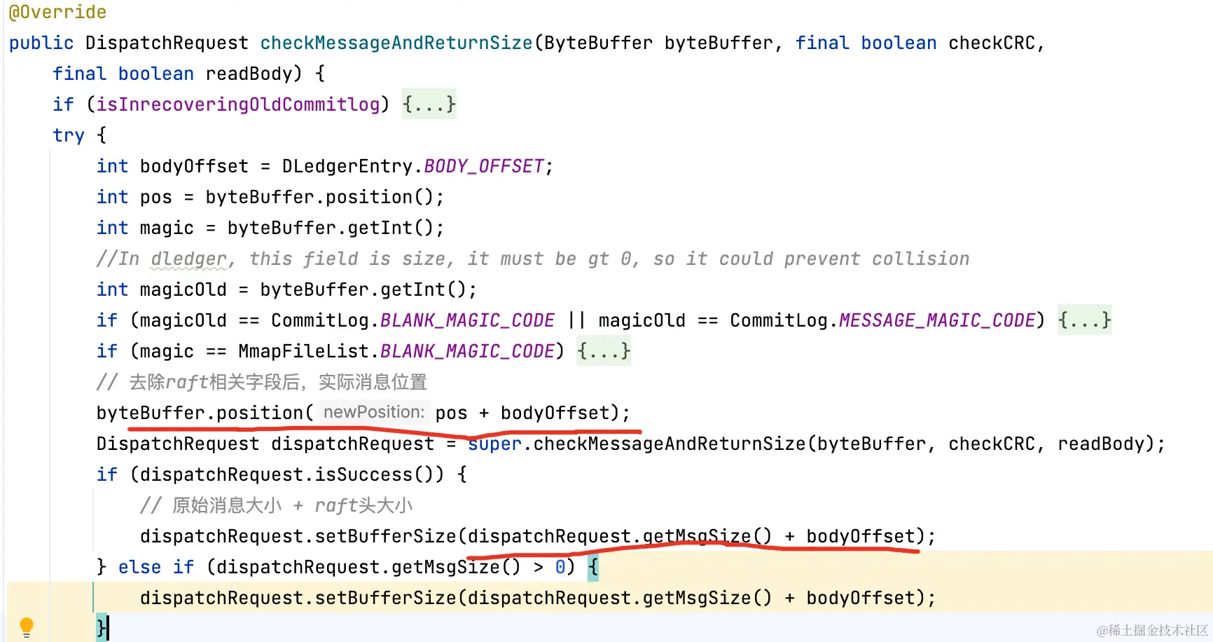 为了适配原生commitlog逻辑,consumequeue中的commitlog物理offset还是实际的commitlog位置,即去除raft头后的位置。