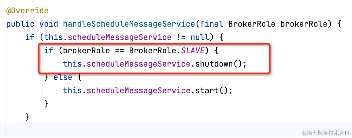 在不存在master角色的情况下,延迟消息在broker端无法调度到目标队列。