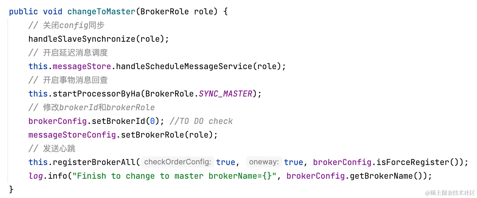 raft leader会成为master,开启事务消息回查和延迟消息调度。
