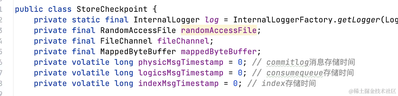 | checkpoint用于恢复 | DefaultMessageStore#StoreCheckpoint | ~/store/checkpoint |