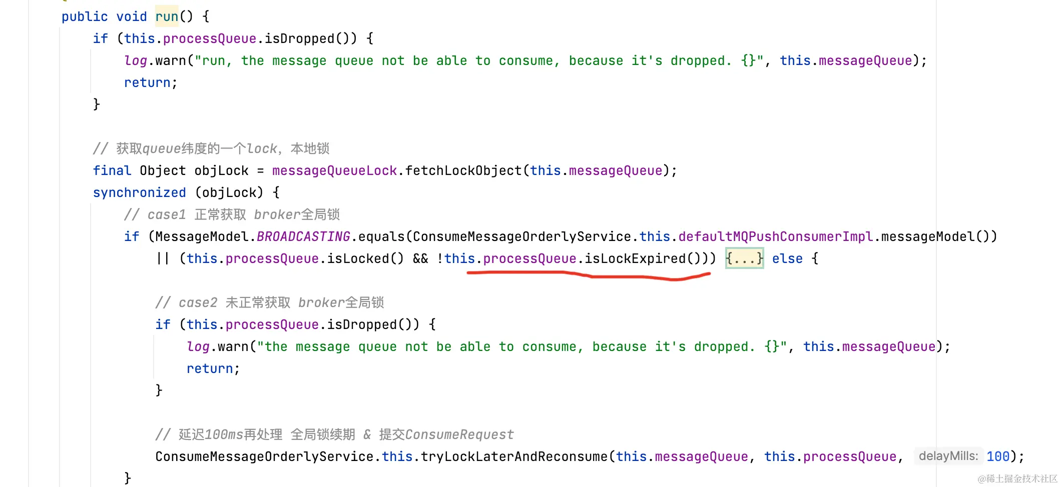 从而导致无法执行用户代码的消费逻辑,消息将积压在客户端(拉消息不判断锁过期,但有消费流控)。