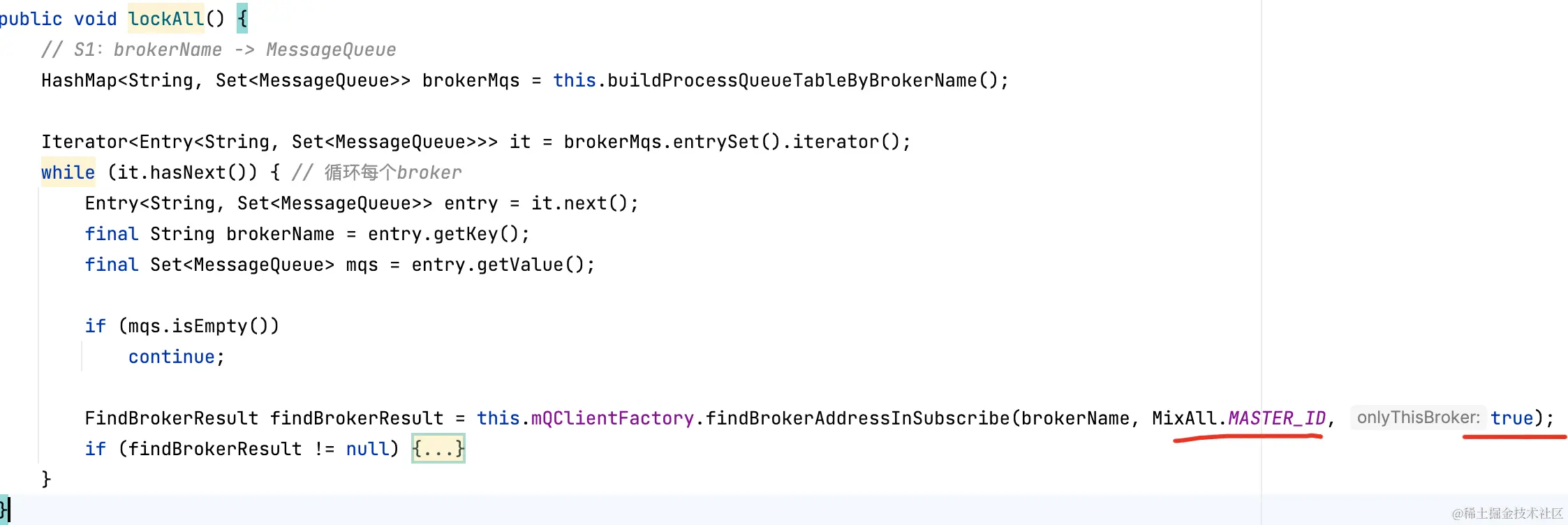 但是消费者MQClientInstance#findBrokerAddressInSubscribe发现master下线了,仍然会从slave拉。