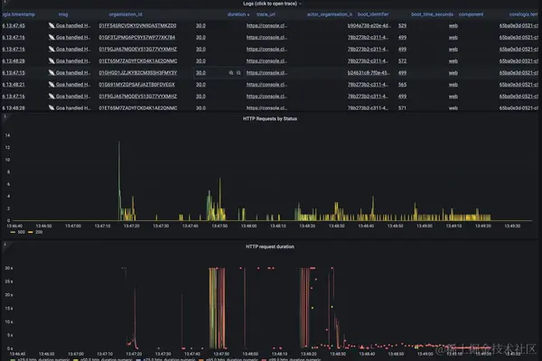当我们注意到这些减速并收到一个客户的报告,以及在我们的错误报告工具Sentry中看到了大量的“context canceled”错误后,我们首先对这些减速进行了调查。