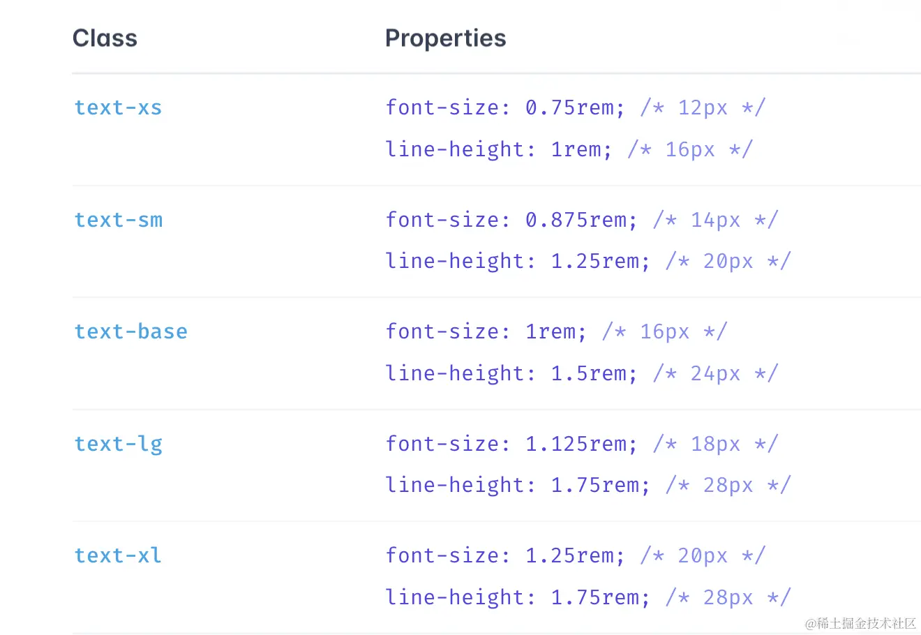 这种情况下,TailwindCSS自带的设计系统能提供基本的设计约束。比如,不知道该选多大的字体时,只需要从如下几个类中选个合适的即可: