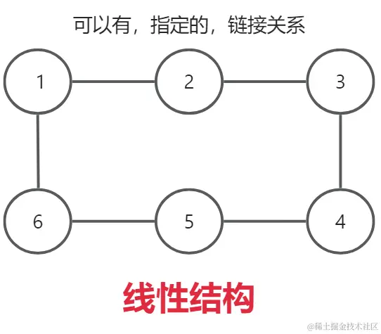 - 线性结构: 数据元素/结点 是一对一的关系。