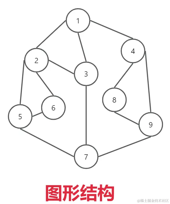 - 图形结构: 数据元素/结点 之间是多对多的关系。