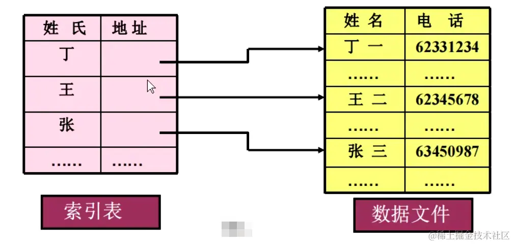 查找一个人的电弧就可以先查索引表,再查相应的数据文件,加快了查询速度。