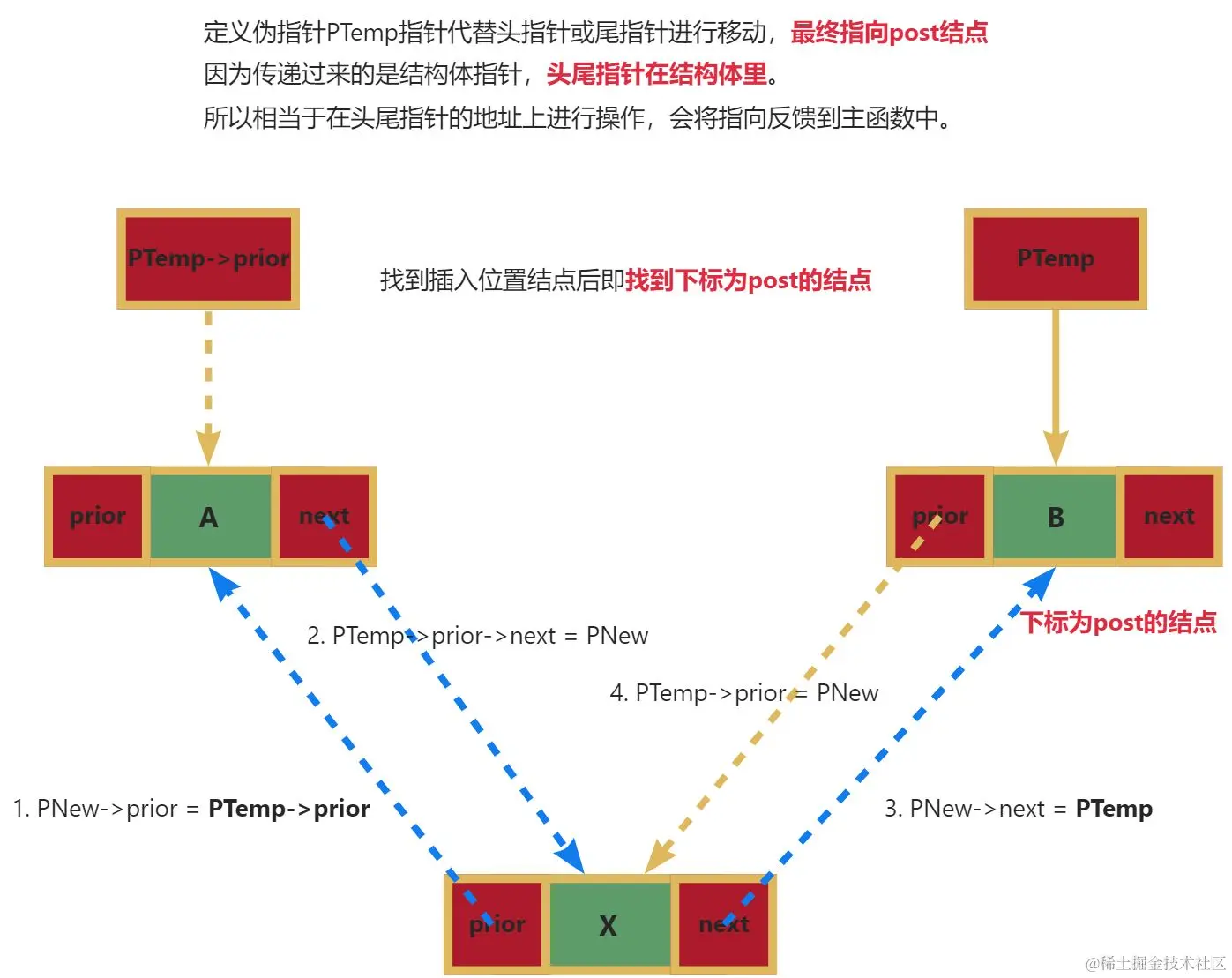 // 去寻找这个位置,让PTemp指向post位置的结点