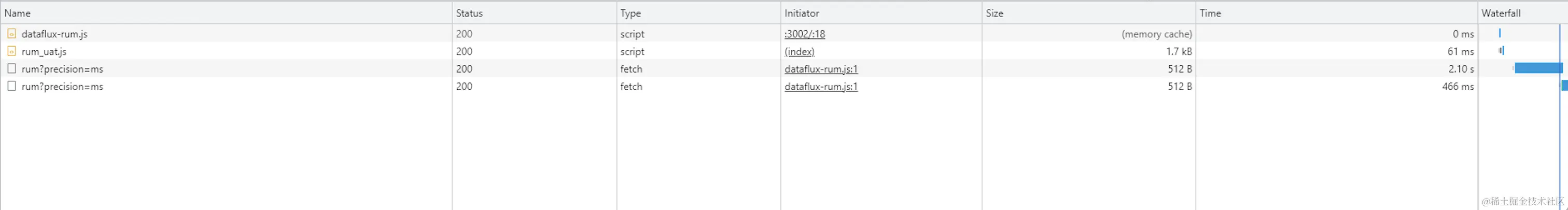 通过 RUM 采集前端数据时,若采集的数据过多,可能会导致占用过多的网络带宽以及其他资源。特别是刚进入首页加载数据时,可能会调用几十次甚至更多次 v1/write/rum?precision=ms数据采集接口。在这种情况下,一种优化思路是对前端资源采集进行筛选和过滤。