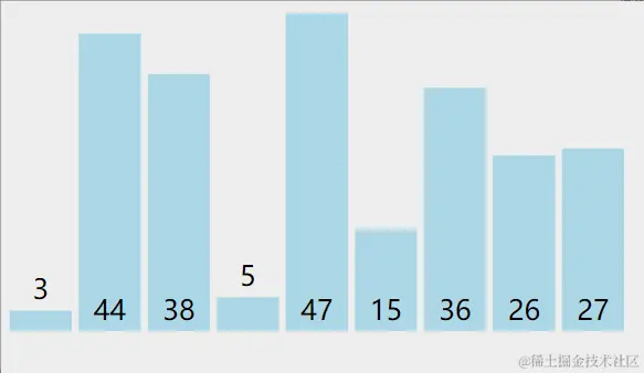 比较相邻的元素。如果第一个比第二个大,就交换他们两个。