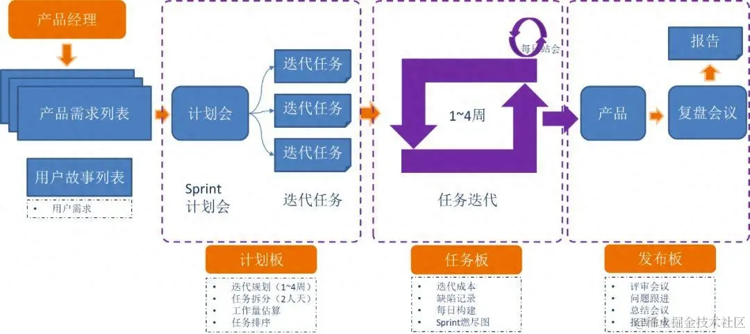 - 重复迭代:团队持续地重复上述流程,不断迭代开发和改进。