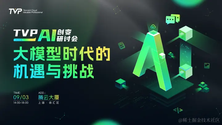 9 月 3 日,「大模型时代的机遇与挑战」腾讯云 TVP AI 创变研讨会,特邀 AI 领域顶级大咖,围绕大模型热点话题进行深度分享与研讨,带你共同探索大模型时代的未来风向。