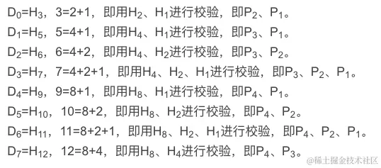 3.确定每个数据位 都由哪些校验码进行校验