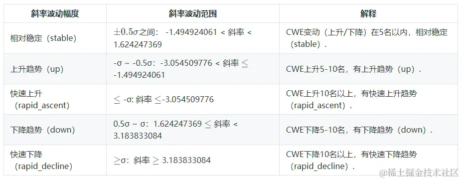 - 0.5σ = 1.559585715,CWE对应的斜率波动的范围在5名左右。
