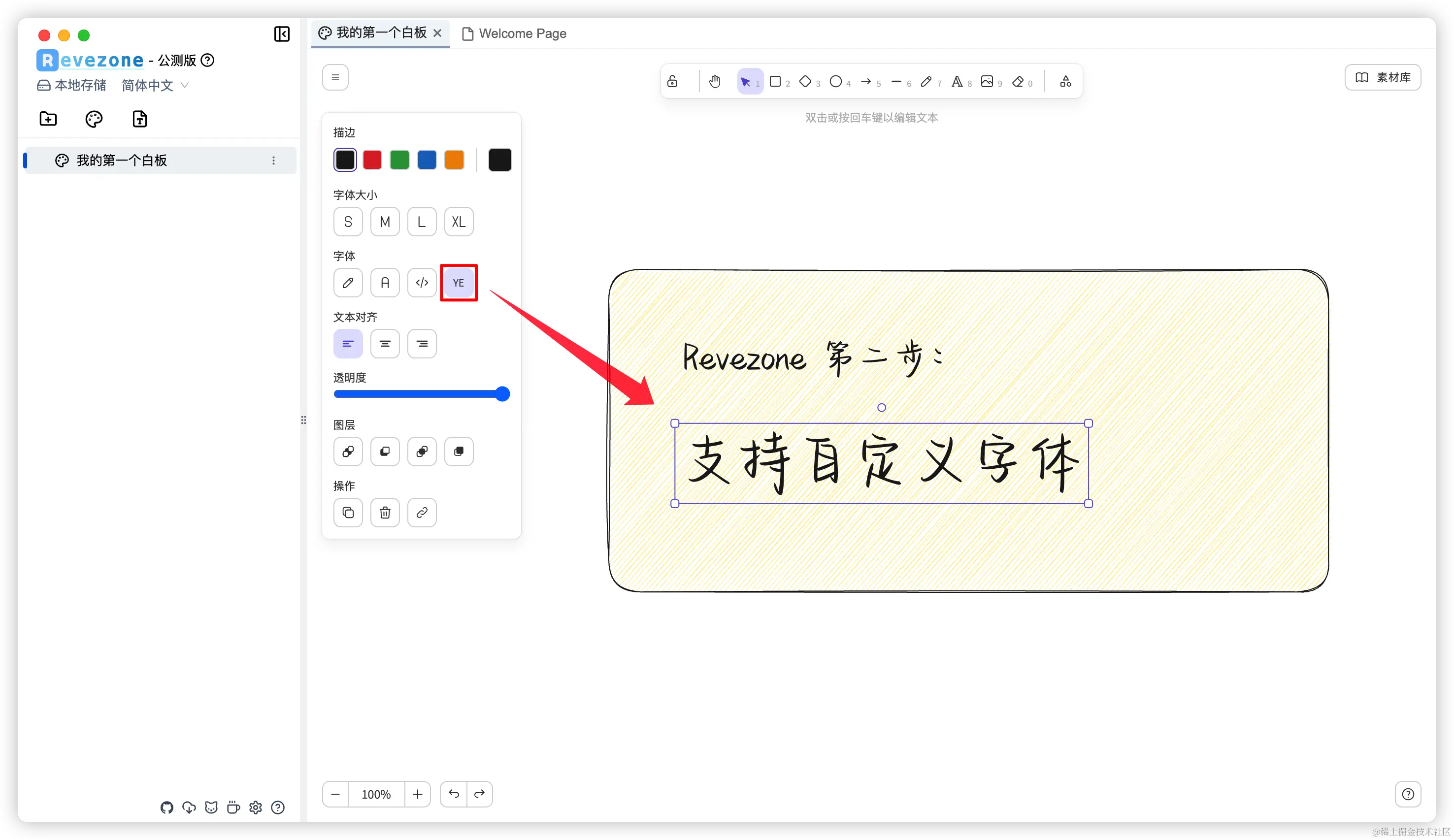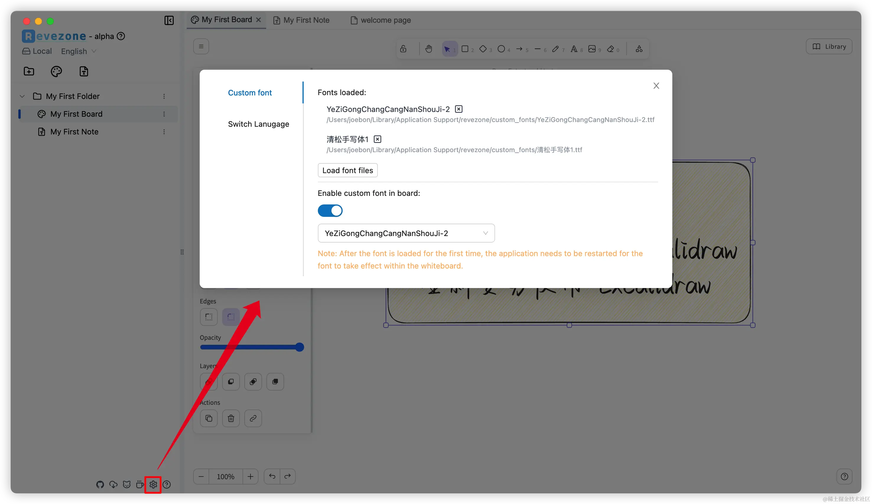 在 Revezone 设置中,可以上传自己喜欢的字体,并在白板中选择启用一个自己喜欢的字体。