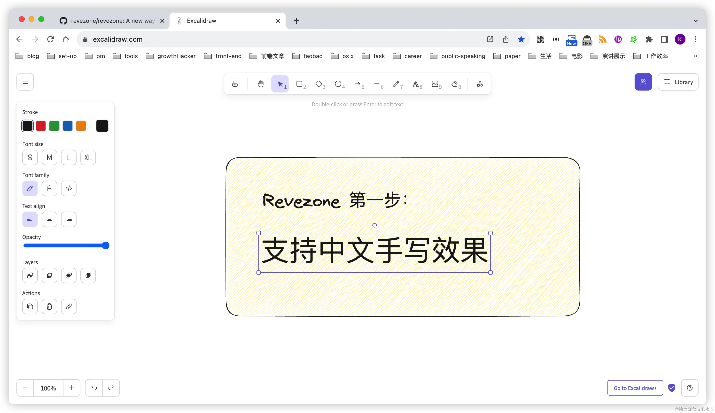 首先,Revezone 在白板的手写字体中默认支持了中文手写字体,中英文使用同一个手写字体进行渲染。效果前后对比如下: