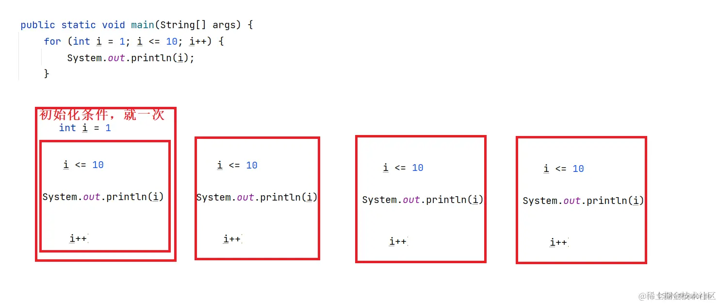 for (int i = 1; i <= 10; i++) {
