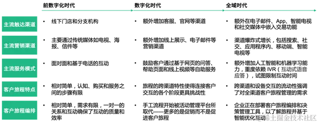 随后, 3.0 全域时代的来临,流量红利触顶,App、智能电视、社交媒体等各个触点中都已嵌入交易功能,渠道爆炸式的增长使得跨渠道和设备交互迎来了全新的机遇和挑战,企业对全渠道客户旅程管理需求增加,开始实施部署客户旅程编排平台,以深入了解客户旅程,并基于智能优化来实现互动,为客户提供一致化的体验。