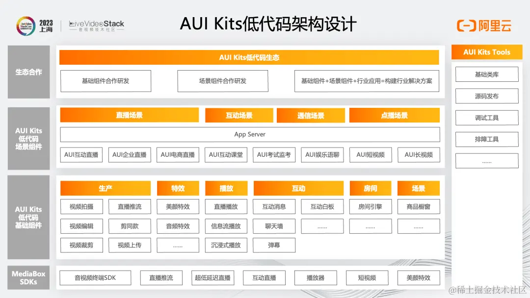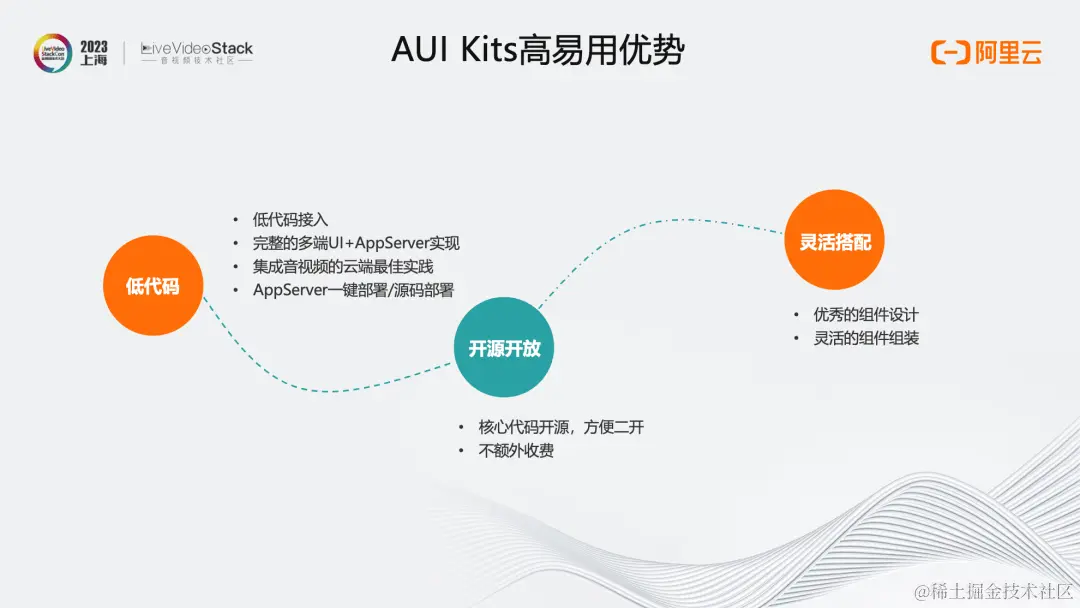 AUI Kits方案不只有UI控件,也包含与服务端紧密配合的场景化组件,其灵活的架构设计可以让客户方便地进行组件组装,另外核心组件的代码也是开源的。