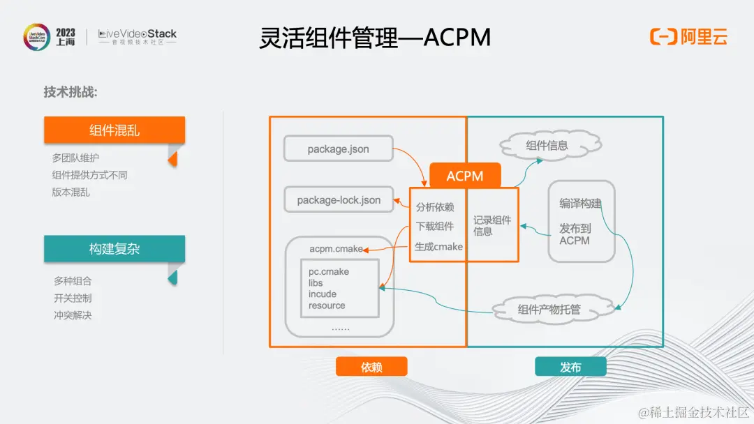一体化工程涉及到多个组件,各个组件的版本管理、依赖关系也相当复杂,组件也很难独立被引用。因此我们设计了一个灵活组件管理工具:ACPM(Aliyun C++ Package Manager)。它由两个主要的模块组成: