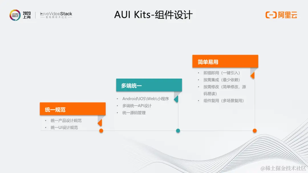 三高,指的是高易用、高性能、高智能。基于一体化SDK,我们可以实现SDK的灵活组合,并且结合AUI方案实现低代码接入以保证易用性;另外,SDK的稳定和高性能是重中之重;同时,SDK的智能化可以很好地服务各种场景需求。