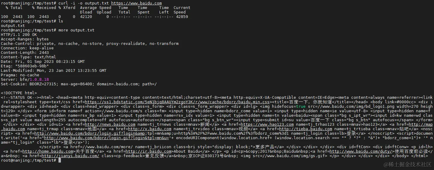 curl -i -o output.txt https://www.baidu.com