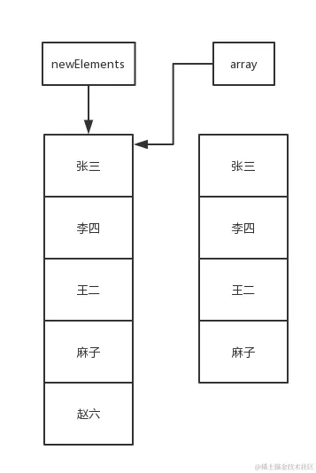 张三复制到新数组里去,把王二和麻子复制到新数组里去,新数组里就是[张三, 王二, 麻子]