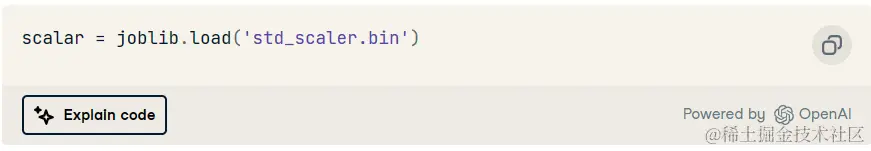 尽管我们的应用程序运行良好,但 ChatGPT 完全错过了我们缩放了数字特征。因此,您可以返回并保存标准标量参数,而不是要求更新代码。