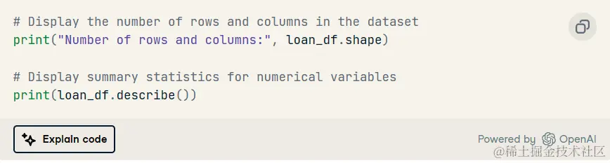 后续提示:“请编写一个 Python 代码来加载并执行贷款数据集的探索性数据分析 (EDA)”