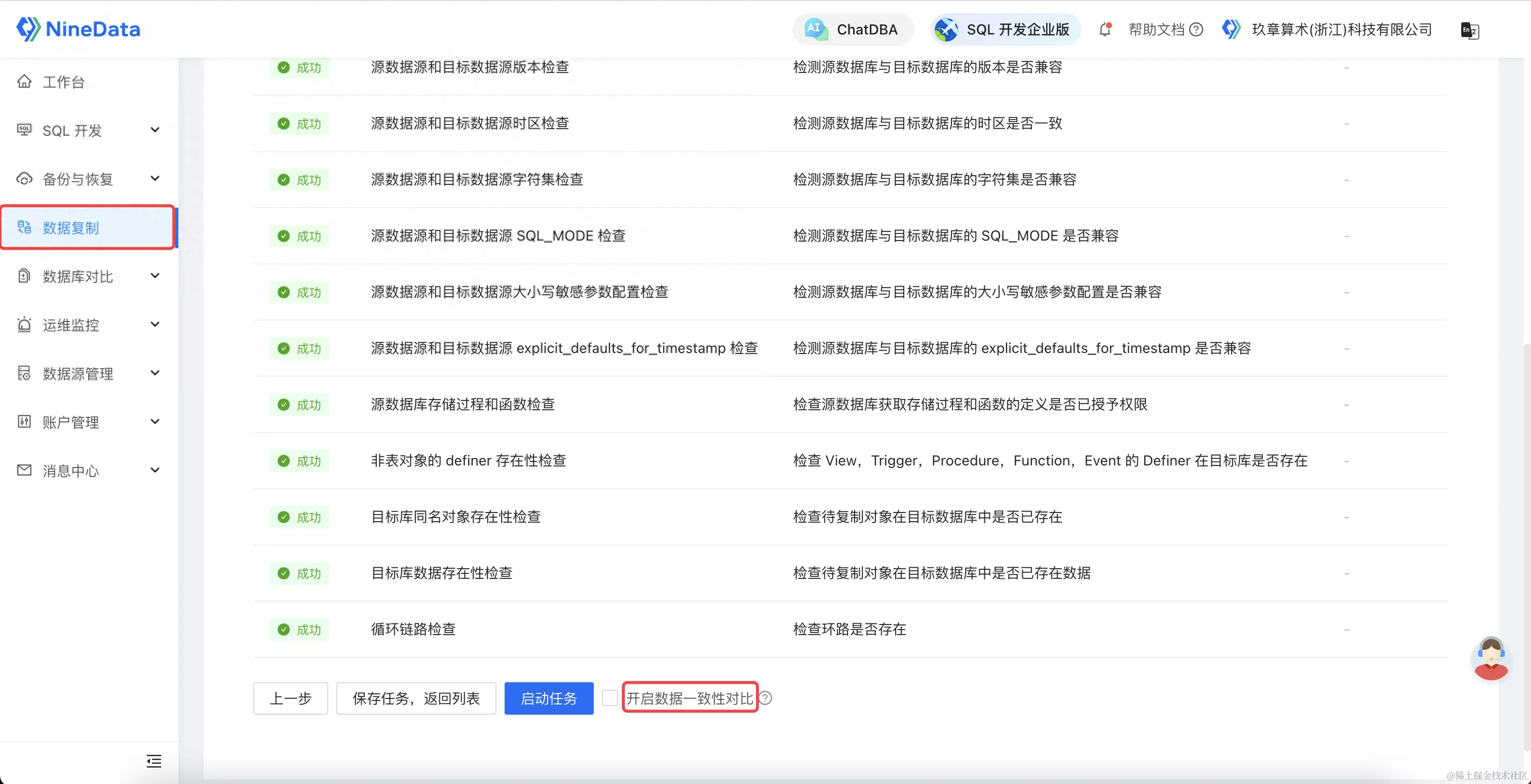 通过丰富的检查项,保证了迁移任务的稳定性;通过开启数据对比,保证了迁移后数据的一致性。到此,我们就完成了一个高性能迁移任务的配置。