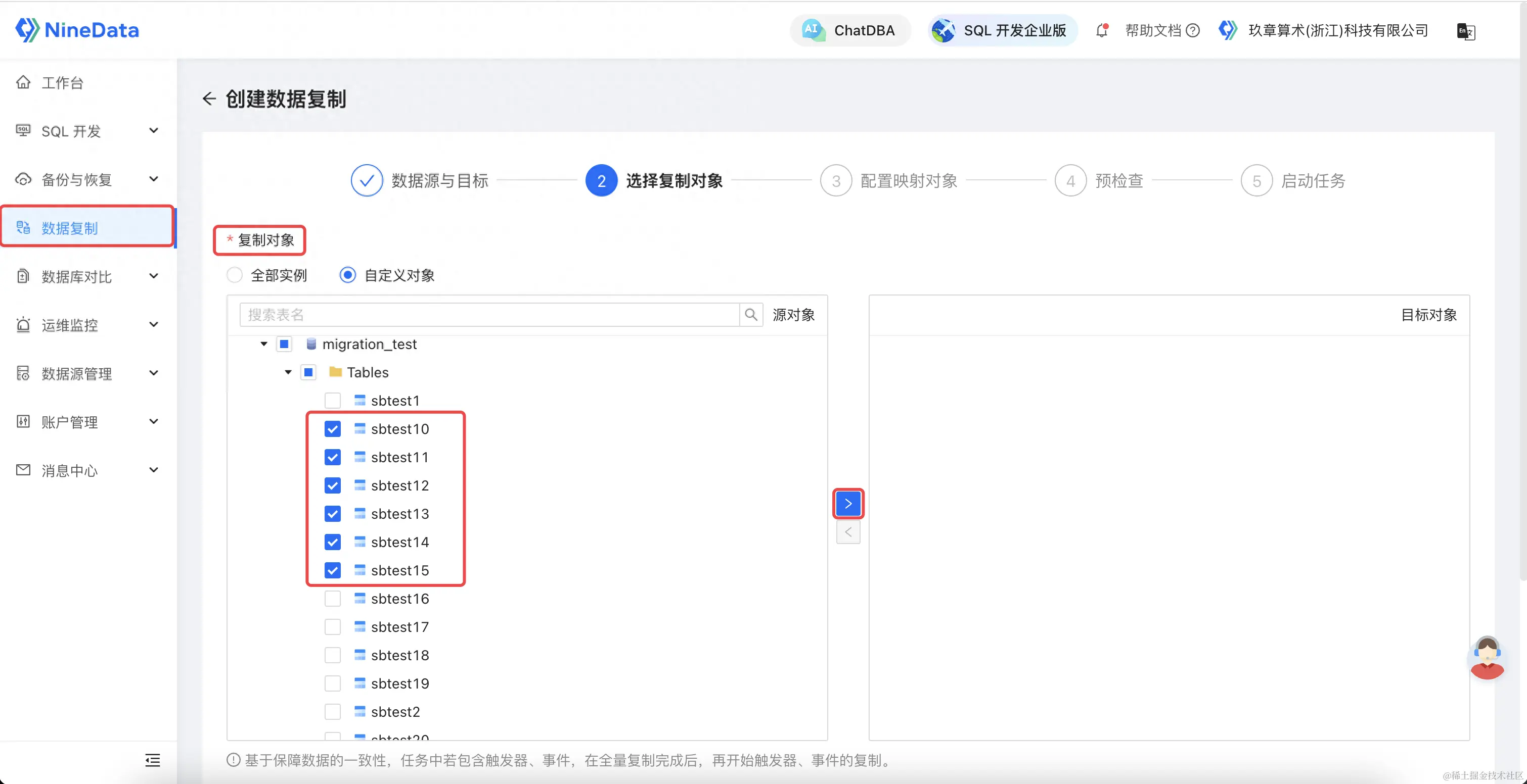 选择迁移对象:针对不同粒度选择迁移对象,也可以选择部分迁移对象。