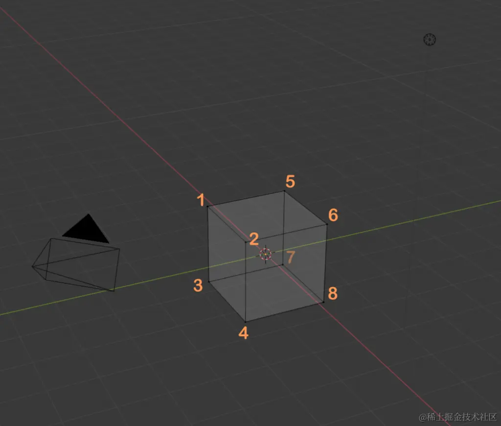 1.- 每边 2m 的立方体,其中心位于原点,它有 8 个顶点(导出者可能会增加顶点的数量和顺序):