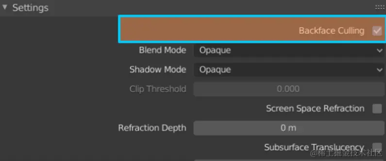 - “双面”指定我们的多边形面是否将被剔除,具体取决于它们的缠绕顺序。此设置可以直接在建模工具中指定,在Blender中,它在材料设置中