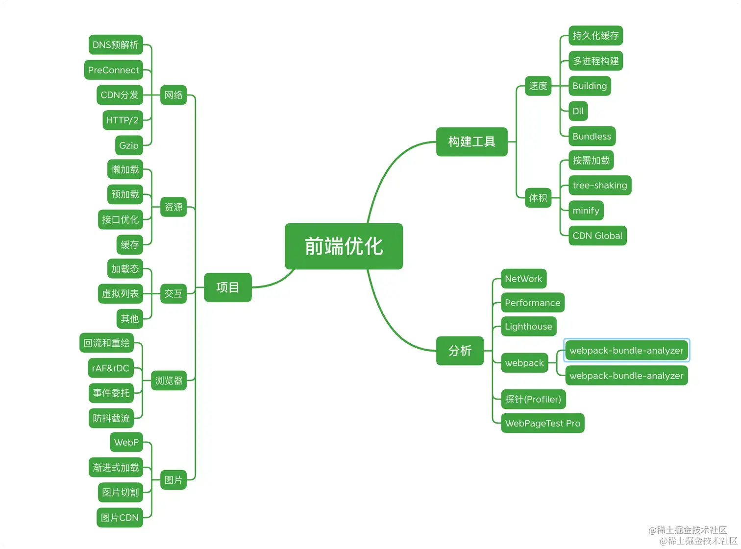 - 针对加载页面资源的大小:可采用懒加载等方式,将需要较大资源的部分分离出来,等整体页面渲染完成后再异步请求分离出来的资源,以提升整体页面加载速度。