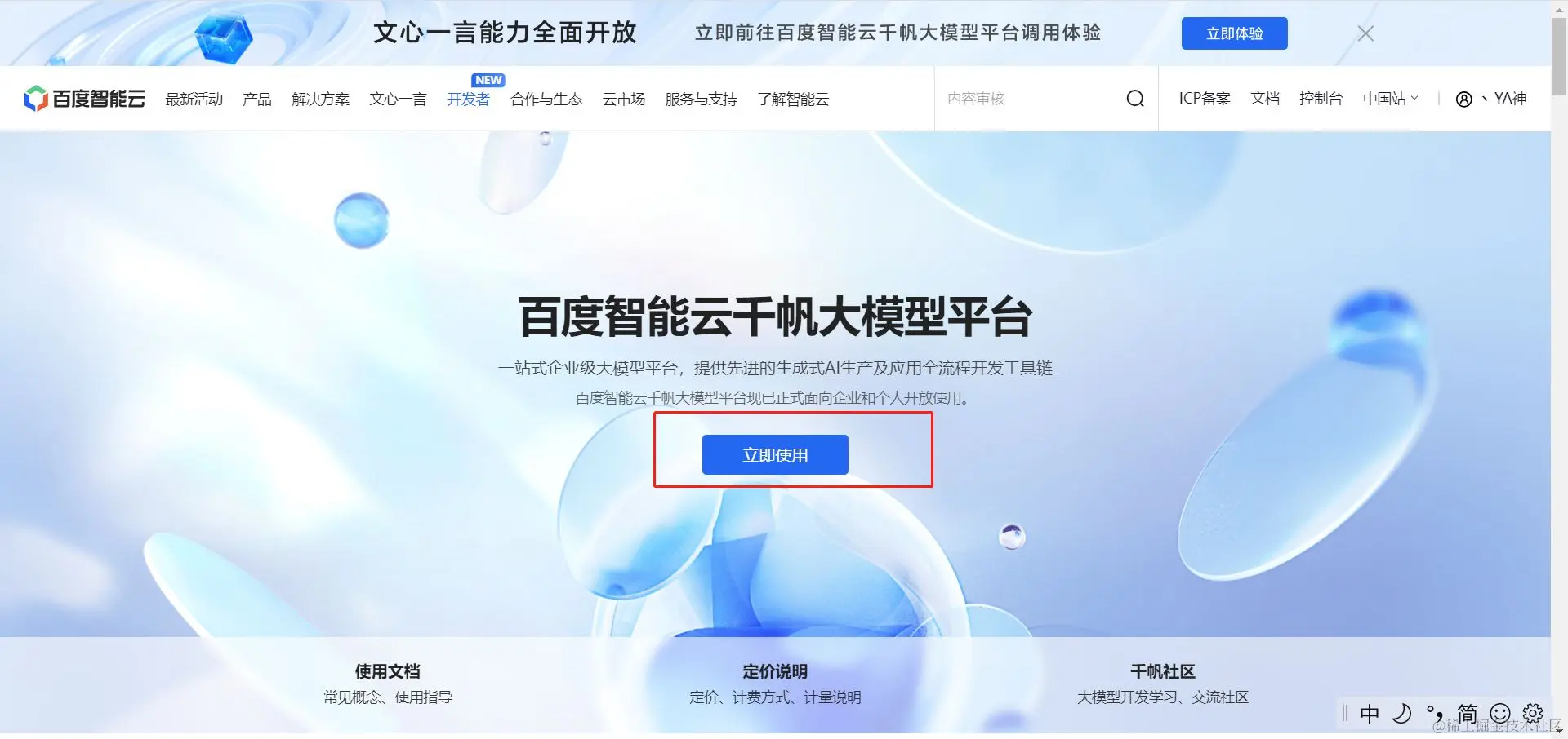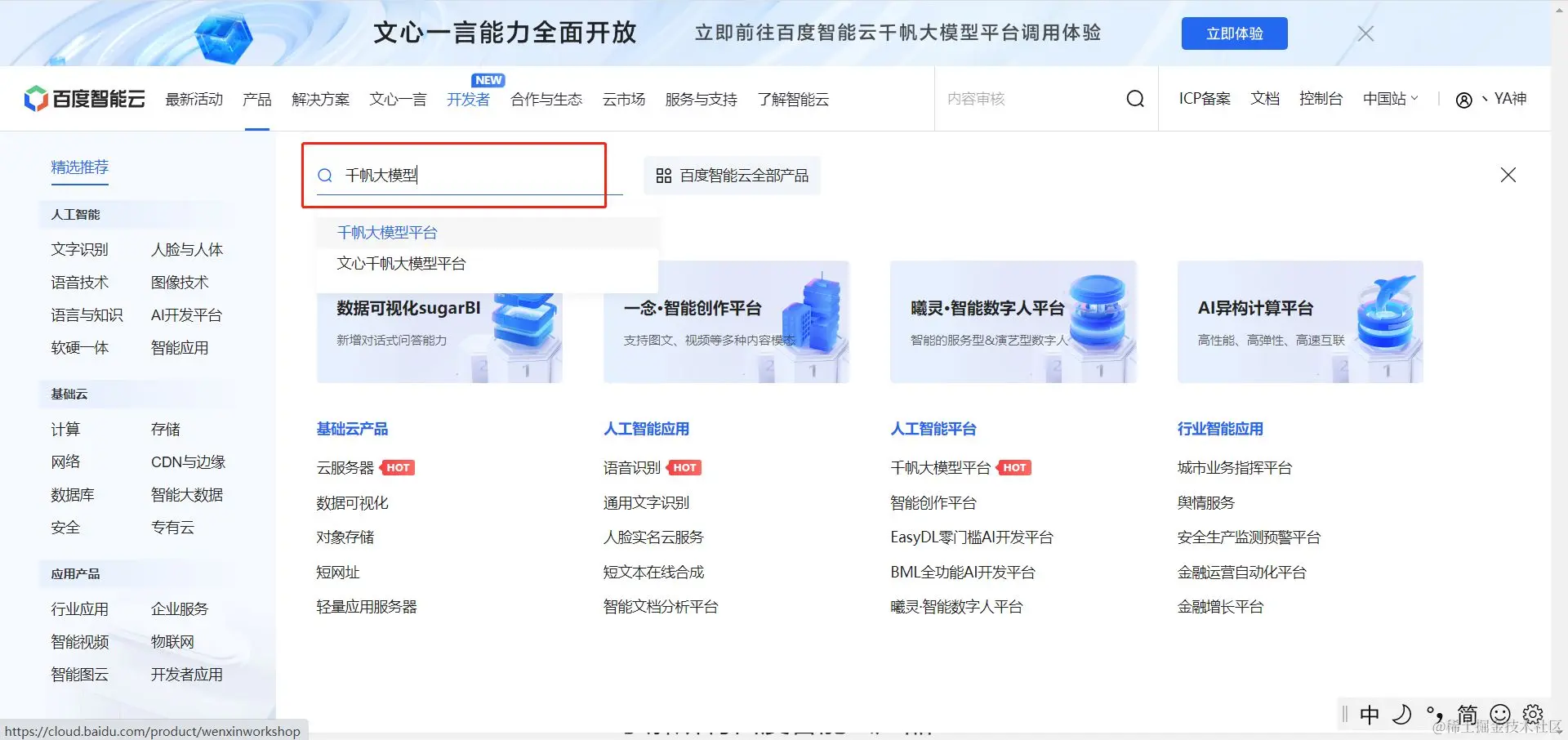 认证成功后申请千帆大模型平台和AI作画