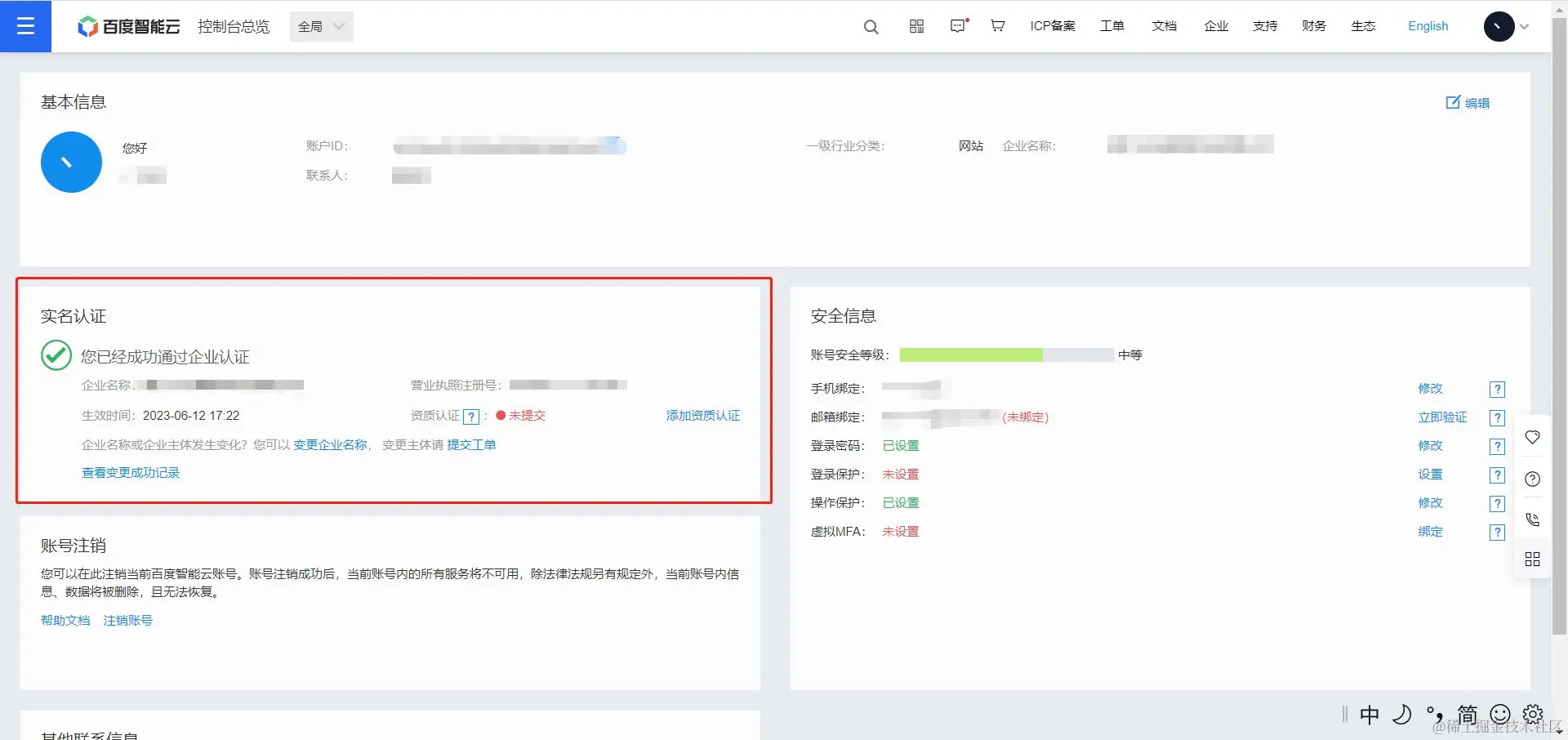 一、首先我们需要到百度智能云进行企业认证