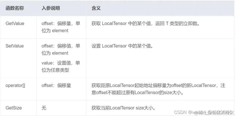 函数说明:类型T支持所有数据类型,但需要遵循使用此LocalTensor的指令的数据类型支持情况。