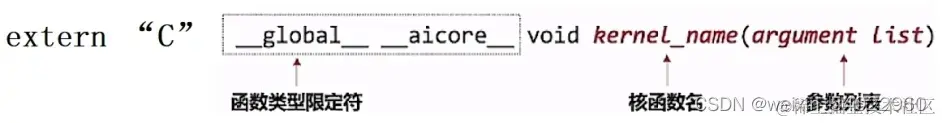 1、内核调用符这种调用方式,仅可在NPU侧编译时调用,CPU侧编译无法识别该符号。