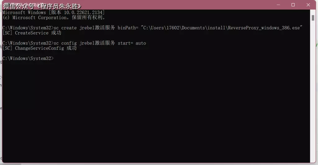 sc create jrebelJH binPath= "C:\Users\17602\Documents\install\ReverseProxy_windows_386.exe"