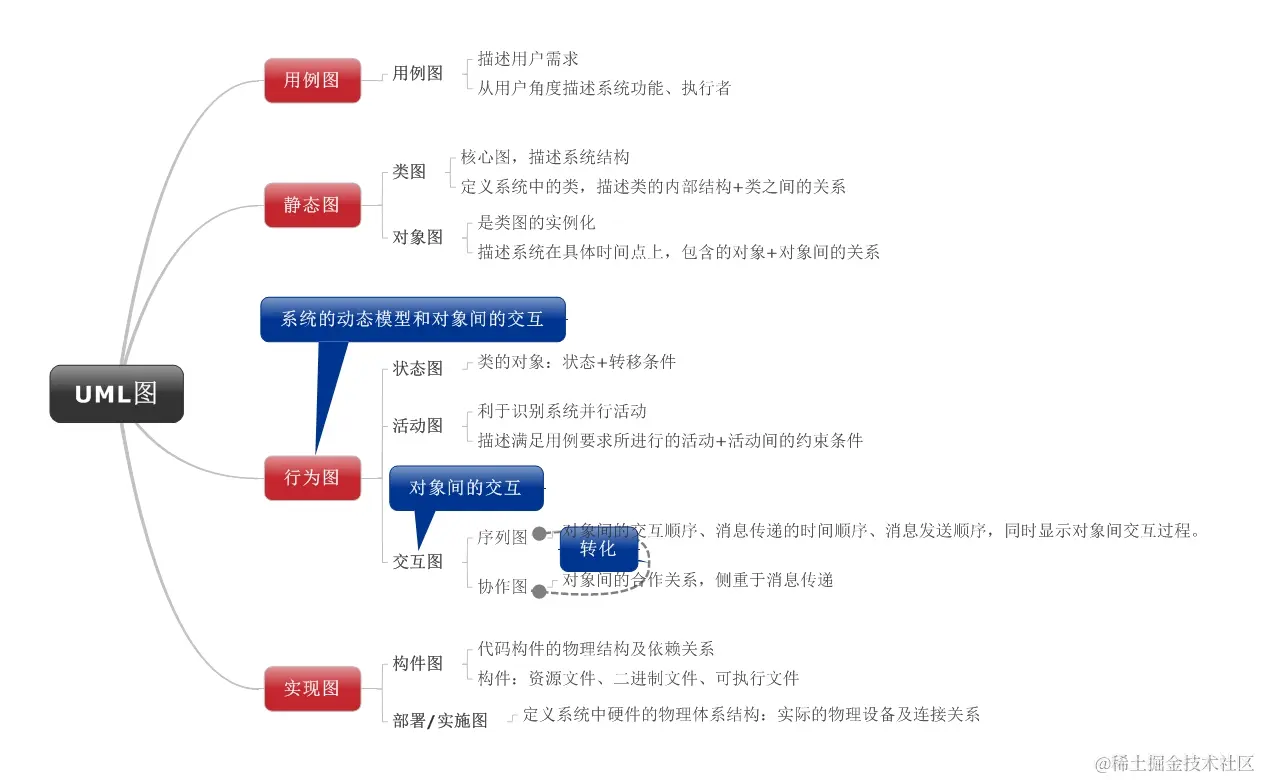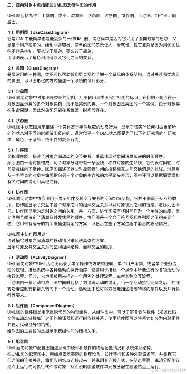 UML中的图其实不止九种 (相同的图还可能会有不同的名称), 这里的九种图是被普遍认可的基础图, 分别为:用例图、类图、对象图、状态图、构件图、部署图、协作图、交互序列图、活动图。