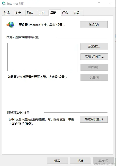 步骤3:点击弹出的Internet属性中的“连接”,点击局域网设置