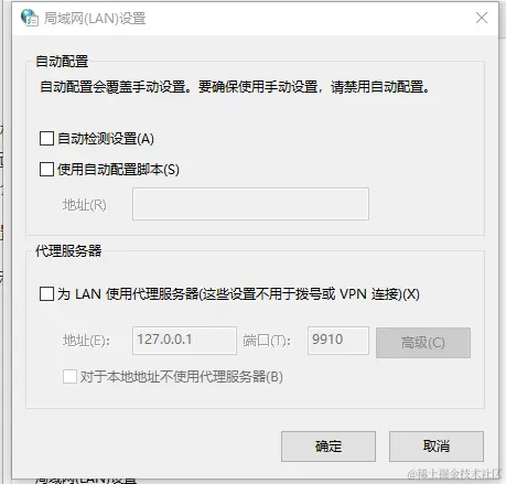 步骤4:将下图中3个选项中的勾选框取消勾选,点击“确定”,就可以正常上网了