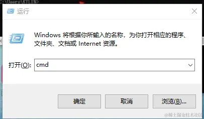 步骤1: 打开命令提示符,快捷键“Win+R”,搜索框中输入“cmd”,点击“确定”。