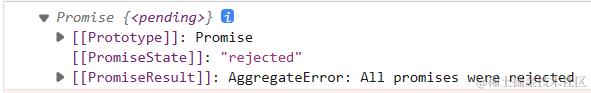 上述代码执行最快的是第一个,所以Promise.race([p3, p1, p2]);的结果取决于第一个,第一个为pending,result的结果就是pending,为成功就成功,为失败就失败。
