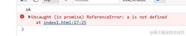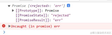 注:失败的回调这里控制台有报错信息,这里不是我们的代码错误,是Promise 的失败回调函数抛出了一个错误。
