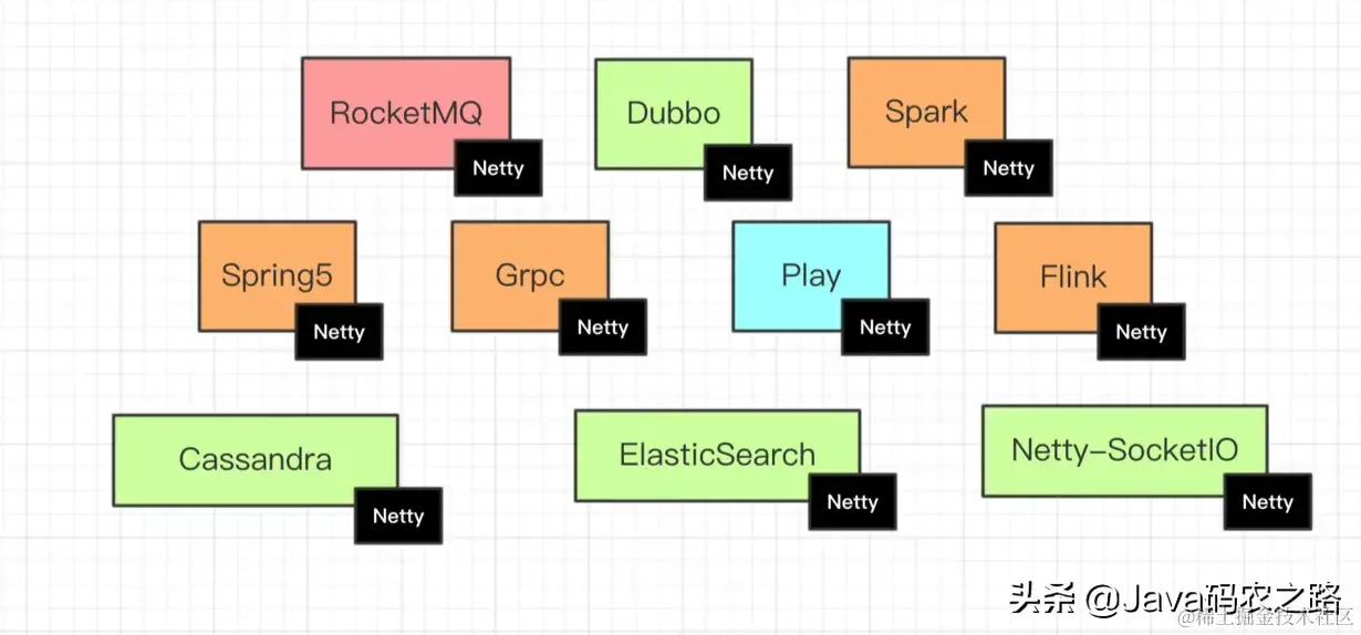 Netty 是互联网中间件领域使用最广泛最核心的网络通信框架。上图中可以看到,几乎所有互联网中间件或者大数据领域均离不开 Netty,掌握 Netty 是作为一名初中级工程师迈向高级工程师最重要的技能之一。