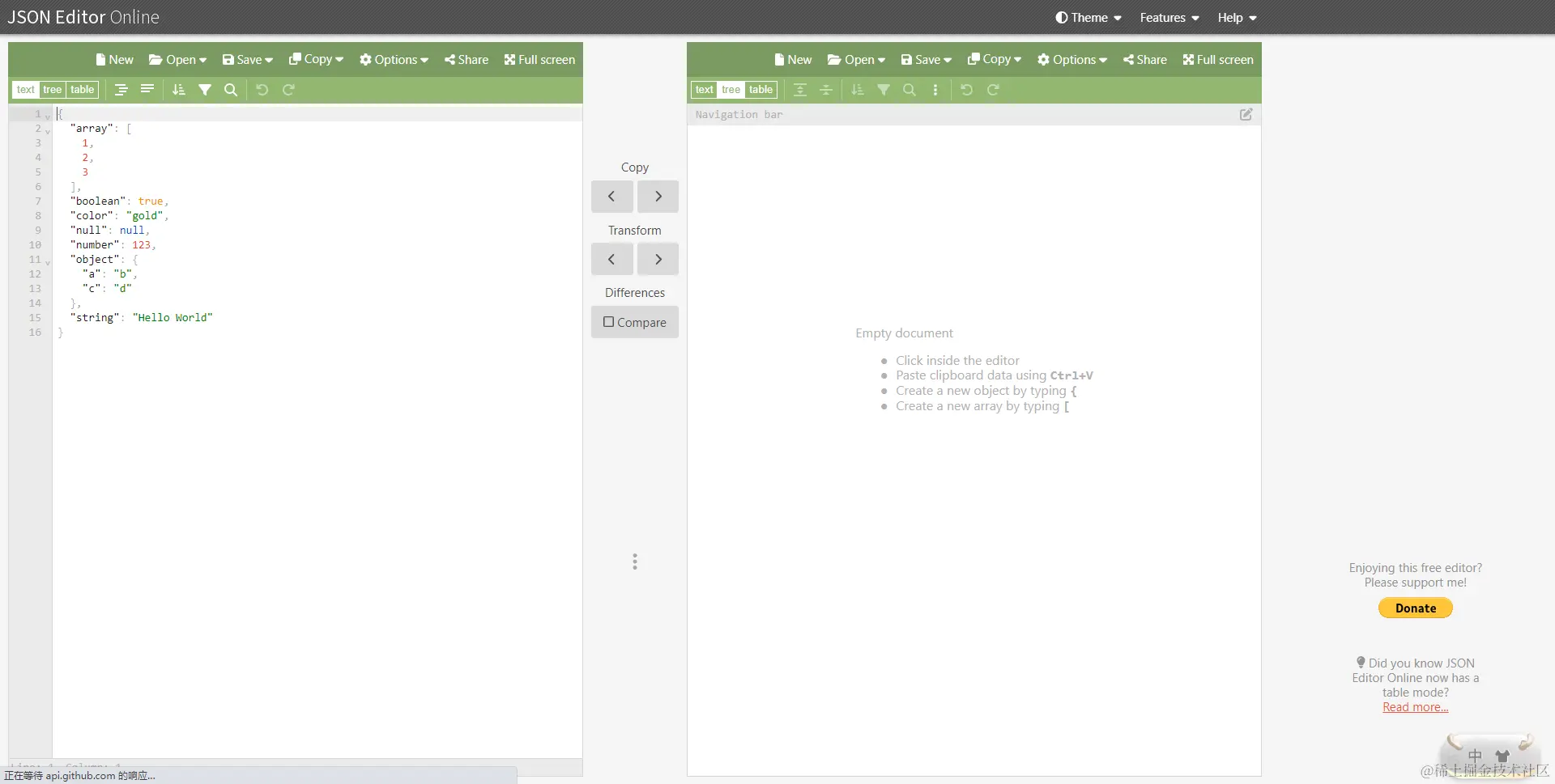 一个简单、灵活、可视化在线的JSON编辑器,支持差异化对比,可查看、编辑和格式化JSON数据。