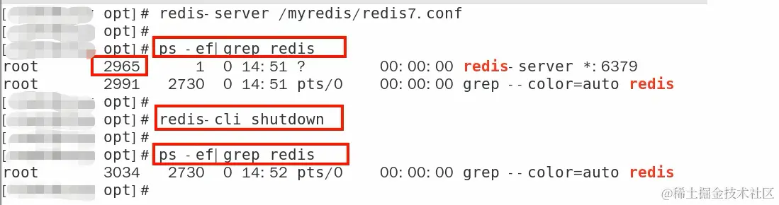 多实例关闭,指定端口关闭:redis-cli -p 6379 shutdown
